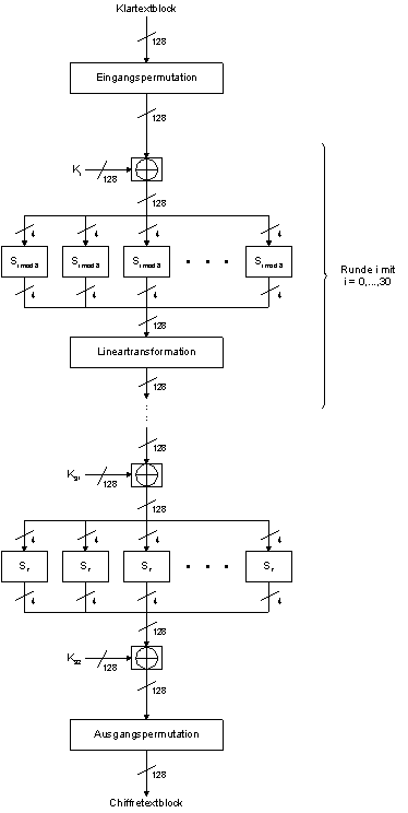 XOR-verknüpft. Nach Beendigung aller Runden wird eine
