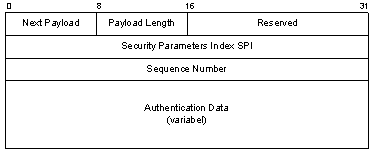 Authentication Header wird dem Payload, wie z.B. einem TCP-Paket, vorangestellt. Er enthält die folgenden Felder: