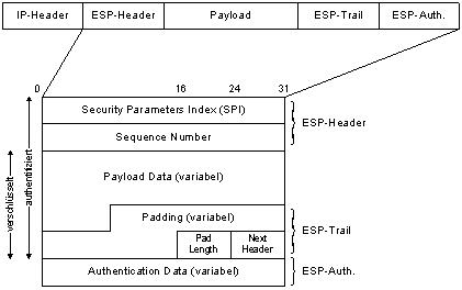 Sequence Number. Den zweiten Abschnitt stellt der Payload dar. Der dritte Abschnitt lässt sich als ESP-Trail bezeichnen, da hier Informationen an den Payload gehängt werden. Der vierte Abschnitt ist optional und