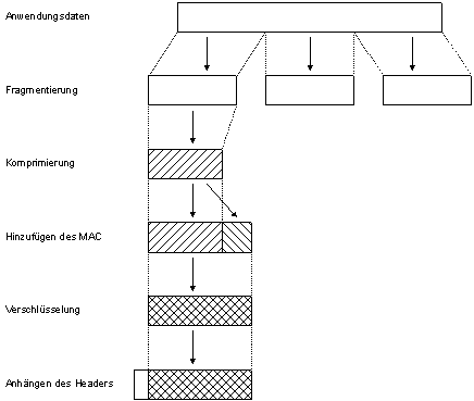 Nachrichtenidentität durch Verschlüsselung und Authentifizierung mittels MAC zur Verfügung. Außerdem teilt das Record Protokoll die Daten in einzelne Fragmente ein und komprimiert die zu übertragenen Daten. In den